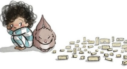 The rabbit is the last to arrive after all the other animals have left. Almost unnoticed because of its meekness, the rabbit sits beside the boy. No words, just presence. The rabbit sits in complete silence. Time passes, and the boy says, “Please stay with me.” The boy begins doing all the other things. Screaming, laughing, and crying. The book ends with the boy making a new plan to build, and the line, “sometimes hugs say more than words.”